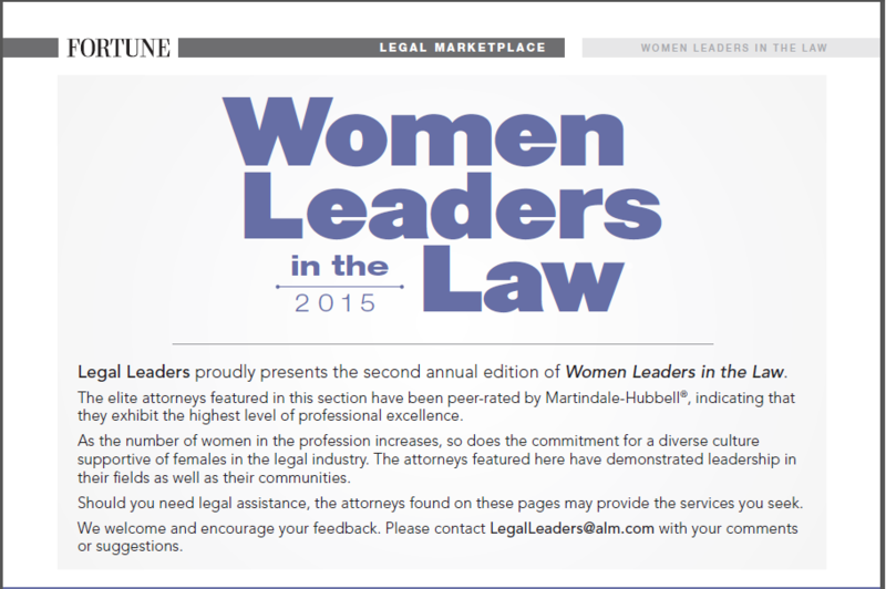 Featured in Fortune Magazine, Women Leaders in Law, September 2015. Read the Full Article Here.
