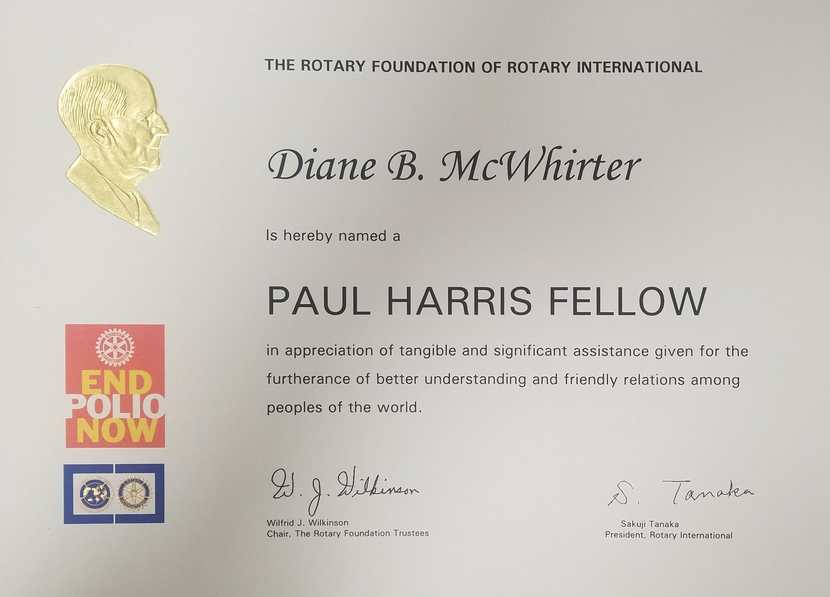 For more than a decade she has been a Member of Orlando Rotary Club. Since 2013 she has served as a Paul Harris Fellow of The Rotary Foundation of Rotary International. She served as Secretary of Orlando Rotary Foundation in 2022-23.